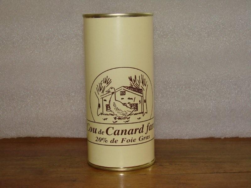Ingrédients: Cou et viande de canard 60%, foie gras 20%, viande de porc, sel, épices. Nous travaillons dans le respect de l'animal, nos produits sont fabriqués sans exhausteur de goût, arômes artificiels, ou conservateurs.Nos canards sont élevés, gavés, et transformés dans notre petite ferme familiale.